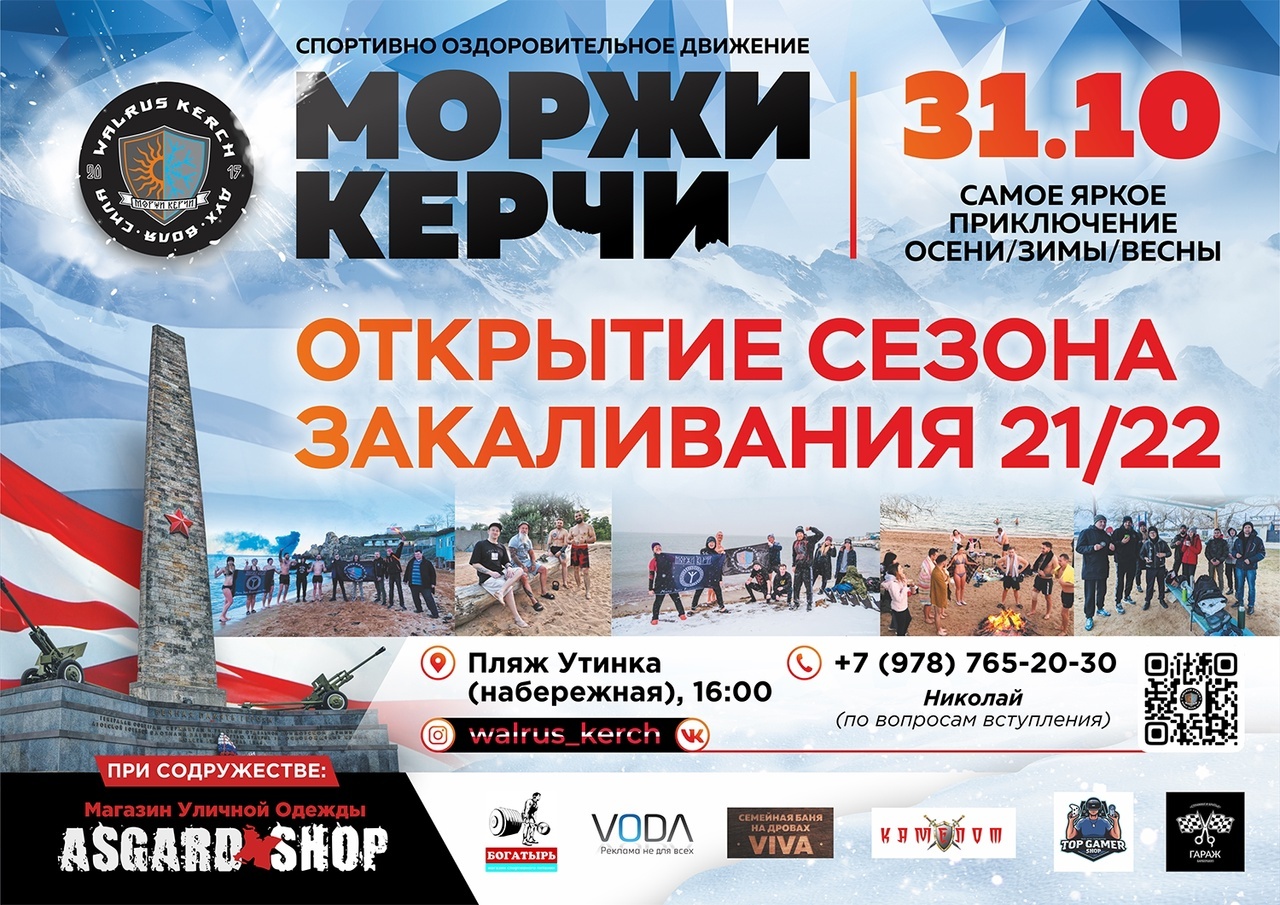 В Керчи 31 октября стартует сезон закаливания. Моржи Керчи предлагают всем желающим принять участие в мероприятие. С собой необходимо взять: шорты (купальник), шлёпки, полотенце, термос с горячим чайком, вкусняшки для качественного набора мышечной массы и отличный настрой, - передает Керчь.ФМ.