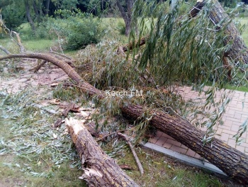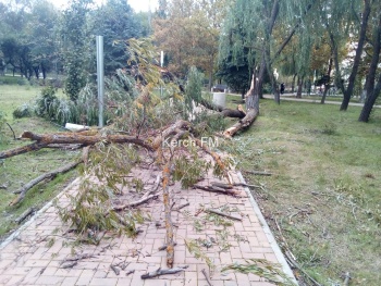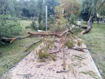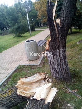 В Керчи в Комсомольском парке дерево упало на пешеходную дорожку. При падении дерево сломало новый фонарь уличного освещения. Об это редакции Керчь.ФМ сообщили очевидцы.
