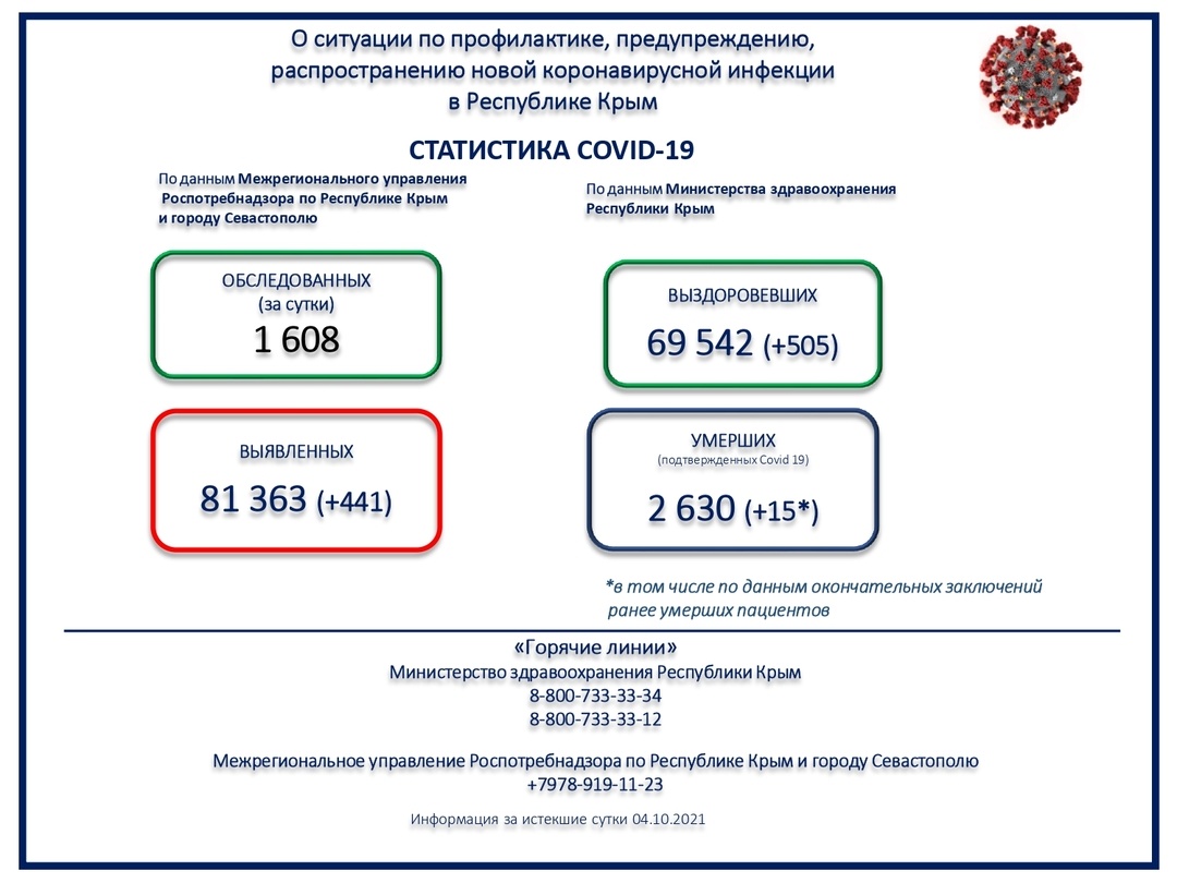 Всего в Крыму коронавирус подтвержден у 81 363 человек. Выздоровевших за весь период - 69 542 человека, скончались 2 630 человек.