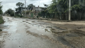 Здесь, еще утром 5 октября произошел сильный порыв водовода. Чистая вода залила дорогу и ближайшие улицы. Сегодня с утра бригада водоканала с помощью техники устраняет порыв.