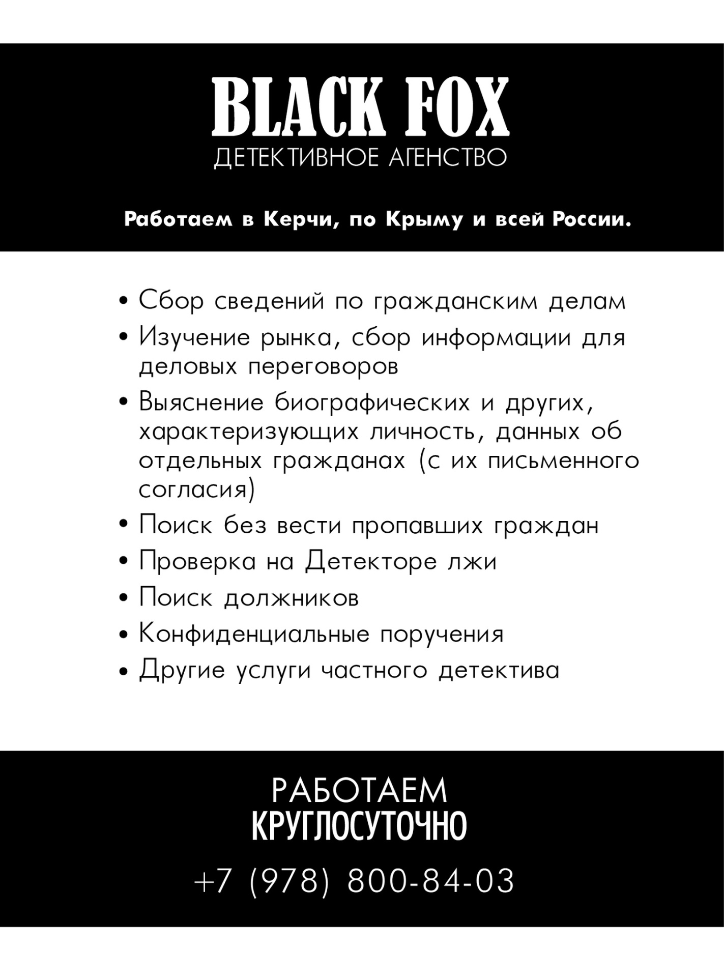 Услуги частного детектива в Керчи, по Крыму и по всей России.