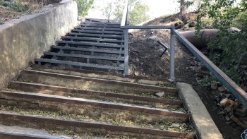 Так, разрушенные ступени отсюда убрали, на их месте появилась железная лестница. Также восстановили и поручни в этом участке, на которых уже отметились вандалы.