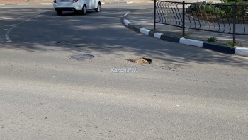 В Керчи на улице Самойленко, на перекрестке с улицей Советской, на дороге образовалась глубокая яма. В нее на протяжении месяца въезжают автомобили, - передает Керчь.ФМ.