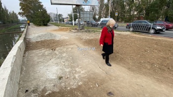 Работы по расширению завершили еще в сентябре, но вот плитку и бетонное покрытие не восстановили. Также требуется, еще восстановить плитку на парапете. На данный момент керчанам приходится передвигаться по песку.