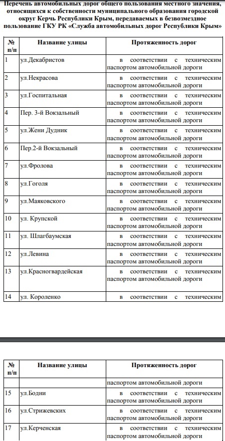Депутаты Керчи передали «Службе автомобильных дорог РК» 17 дорог