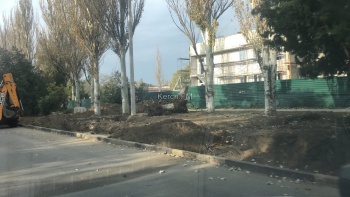 Так, сюда заводят систему водоснабжения. Также продолжают готовить участок под парковку, выкорчевывая большие корни старых деревьев.