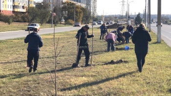 В Керчи с утра 28 октября на ул. Буденного многолюдно: городские власти, работники предприятий и общественность высаживали саженцы, - передает Керчь.ФМ.
