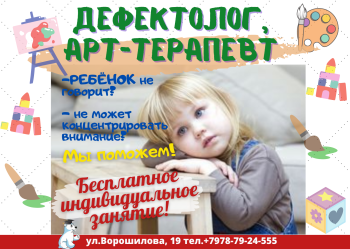 Спешим поделиться отличной новостью! В Образовательном центре «Умка» ведёт приём специалист дефектолог, арт-терапевт, использующий в своей работе методы психологической коррекции, основанные на применение для терапии искусства и творчества.