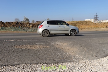На противоположной стороне после того, как проводили работы, связанные со строительством транспортной развязки, и вскрыли часть асфальта, проезжая часть «сползла», образуя волну.