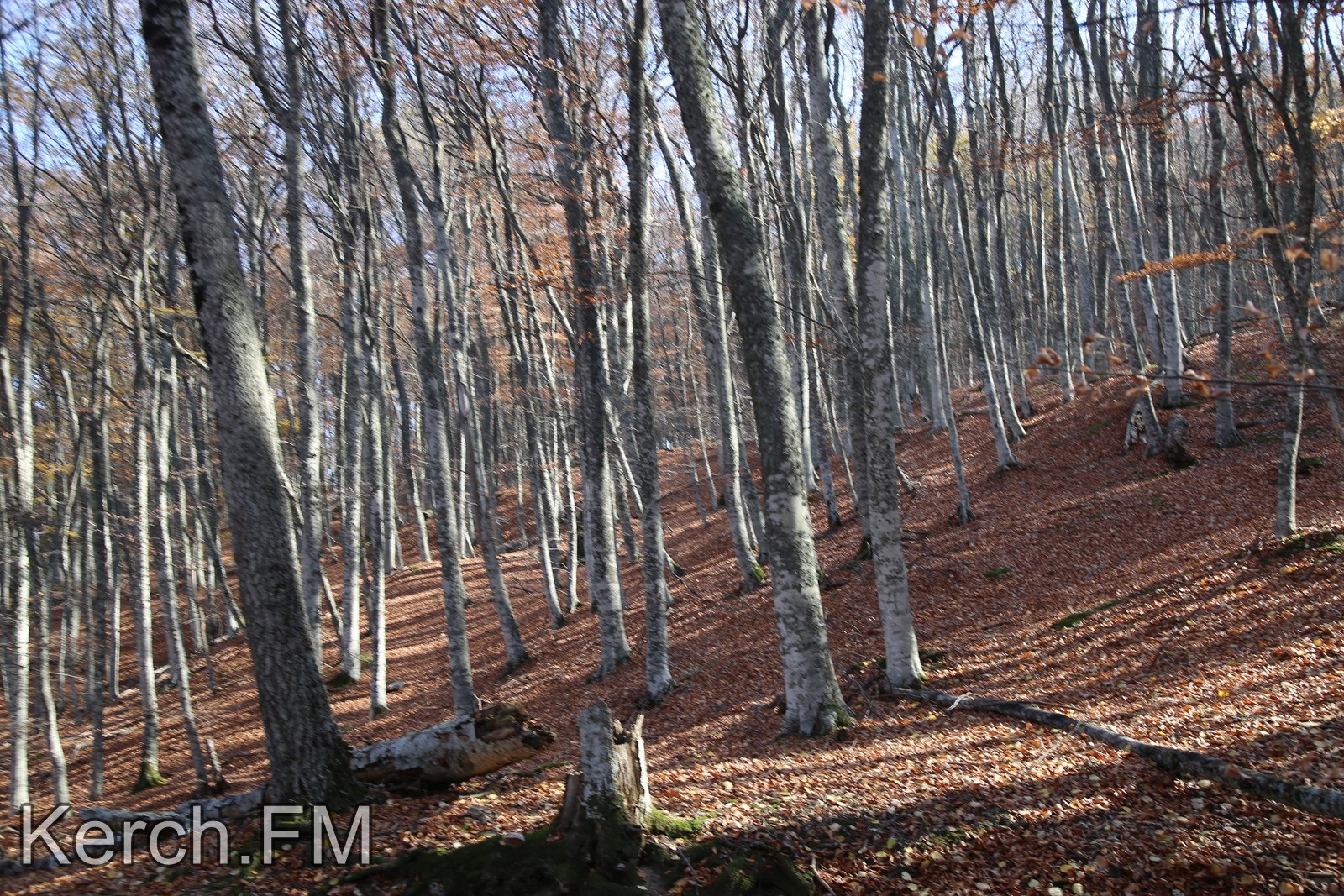Необыкновенной красоты буковый лес уже сбросил с себя листву, и деревья стоят голые. Но все листья пока сухие, ими застлано все вокруг, а главное чистые, поэтому здесь можно спокойно закопаться в них и просто полежать на листочках.