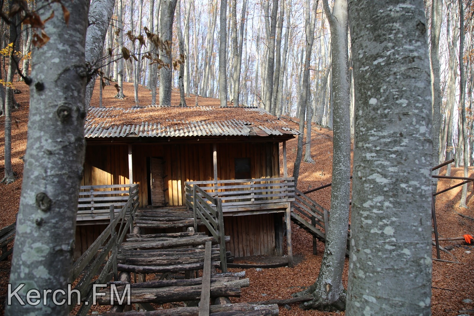 Отправились к «Избушке лесника» - так это место здесь называют. Видимо, это была старая турбаза, когда работал бывший подъёмник на гору. Сейчас место не очень безопасное, но очень привлекает туристов. Обычно, люди приходят пофотографироваться.