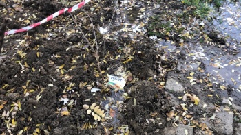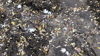 Так, из-за порыва водовода здесь вели работы. Дорожку разрыли, трубу отремонтировали, место работ закопали, натянули сигнальную ленту. А плитку не восстановили.
