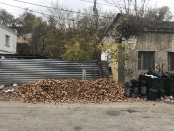 На ул. Ленина настоящий листопад уже не первый день. Службы вышли на уборку и даже расчистили главную пешеходную улицу. Но вот сами листья решено не вывозить, а складывать в кучу на соседнюю улицу - Театральную. Об этом Керчь.ФМ сообщили постоянные читатели