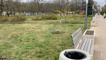 Также выкопали лунки под зеленные насаждения. Ранее, здесь уже высадили 20 саженцев туи