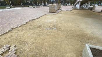 В Комсомольском парке начали работы по восстановлению территории. Сегодня, 9 ноября, около арки рабочие сняли часть плитки, и утрамбовывают песок под следующую укладку плитки, - передает Керчь.ФМ.