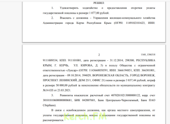 В Конце прошлой недели Арбитражным судом Крыма вынесено сразу несколько судебных приказов о взыскании с УЖКХ Керчи в пользу ООО «Луксар» задолженностей по муниципальным контрактам и сумм штрафов за просрочку исполнения обязательств. Приказы опубликованы в системе «kad.arbitr.ru», - передает Керчь.ФМ.