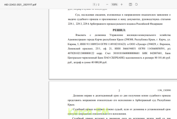 «Контракт № 9-ЕП Объекты закупки Благоустройство придомовой территории, расположенной по адресу: Республика Крым, г. Керчь, ул. Буденного д. 2/5» суд взыскал пеню в размере 8 832, 84 рублей, штраф в размере 60 000, 00 рублей за неисполнение обязательств по муниципальному контракту №09-Е задолженность в размере 80 101, 66 руб. руб., штраф в сумме 40 000, 00 руб. от 23.03.2021.