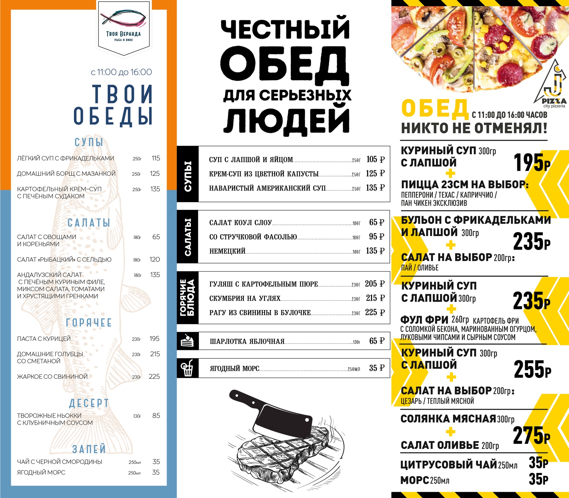 Обед - это не только ценный перерыв, а также щедрая порция заряда энергии и отличного настроения на оставшийся день) Наши обеды улыбаются Вам всю неделю с понедельника по пятницу с 11:00 до 16:00.