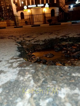 Напротив «Блинной» на Советской  образовалась опасная яма. Небольшая по современным меркам, но глубокая яма может стать причиной аварии, - передает Керчь.ФМ.