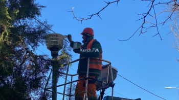 В Керчи 26 ноября на улице Войкова Горсвет проводит работы. Специалисты устанавливают плафоны на опоры фонарей. Кроме этого, производят их покраску. На 11:00 часов работы проводили около школы №17, - передает Керчь.ФМ.