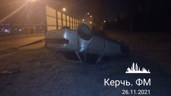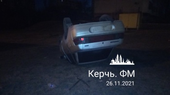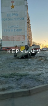 В Керчи рано утром на Верхнем Солнечном произошло ДТП. Легковой автомобиль перевернулся из-за наледи на дороге, - передает Керчь.ФМ.