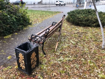 В Керчи неизвестные разломали скамейку в сквере