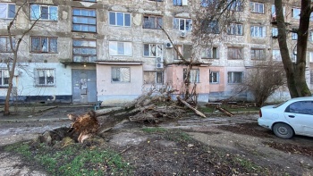 В Керчи 1 декабря на улице Капитана Алиева, 12 сильный ветер повалил тополь. Дерево при падении повредило крышу пристройки на первом этаже, на балконах, снесло несколько кондиционеров, оборвало провода и перекрыло дорогу, - передает Керчь.ФМ.