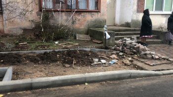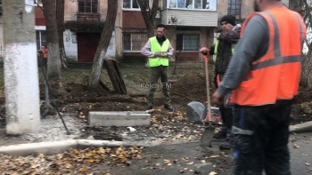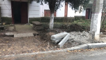 В Керчи рабочие переделывают будущие пешеходные дорожки, посреди которых находились бетонные электроопоры, - передает Керчь.ФМ.