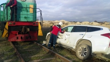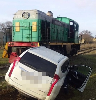 В тот же день, в 15-18 на пульт оперативного дежурного поступило сообщение о том, что в городе Евпатория на железнодорожном переезде, между пр.Межквартальный - Лесное шоссе, произошло столкновение маневрового локомотива и легкового автомобиля. Водитель легкового автомобиля «Mitsubishi» пренебрёг правилами дорожного видения и допустил столкновение с маневровым локомотивом.