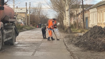 В Керчи 10 декабря часть дороги на улице Жени Дудник подготавливают к асфальтированию. Рабочие с помощью лопат, очищают дорогу от луж. Всю грязь и воду они скидывают лопатами на газоны около частных домов, - передает Керчь.ФМ.