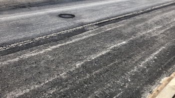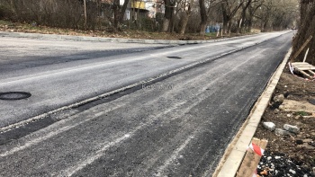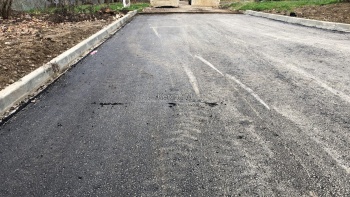 Отметим, к ремонту дороги здесь приступили еще в августе. Потом работы затихли и начались в октябре. Укладывать асфальт начали в ноябре. Примерно в это же время здесь делали пешеходные дорожки вдоль домов, но посреди них оказались электроопоры. Потом дорожки было решено переделать.