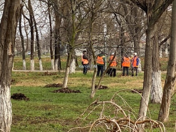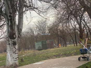 В Керчи 15 декабря в Комсомольском парке коммунальщики наводят порядок. Сотрудники зеленхоза с самого утра собирают листву на газонах. Для мусора завезли контейнер, - передает Керчь.ФМ.