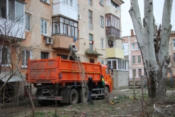 Служба городского хозяйства выполняет кронирование деревьев на внутридворовой территории ул. Айвазовского, 19.