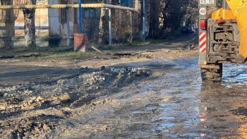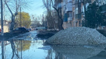 В Керчи на улицу Гудованцева завезли щебень, часть дороги засыпали. Стоит отметить, что ситуация на данной дороге ухудшилась. На 21 декабря на улице к грязи добавились лужи, из-за этого не видно ям.