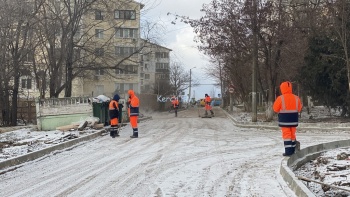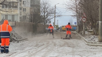 В Керчи 22 декабря улицу Рыбаков перекрыли. Рабочие подготавливают её к асфальтированию. Специалисты с помощью техники очищают дорожное полотно от снега. Здесь работы начали 11 ноября. Завершить тоже должны до конца 2021 года, - передает Керчь.ФМ.