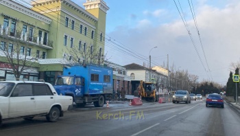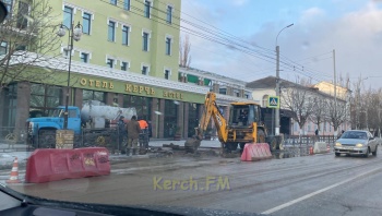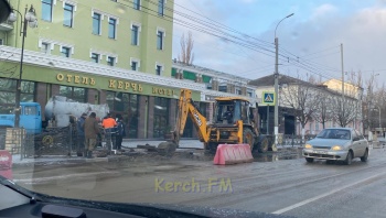 В Керчи 23 декабря на улице Кирова, около гостиницы Керчь, водоканал устраняет порыв водовода.