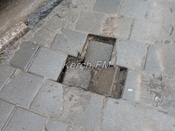 «Вот, только недавно провалилась плитка. Место не ограждено, боюсь если в темноте туда ногой провалится человек, все закончится не очень хорошо », - написали керчане.