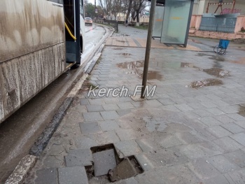 В Керчи, у остановки «Музей», расположенной со стороны набережной, провалилась плитка. Об этом  Керчь.ФМ сообщили постоянные читатели