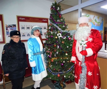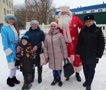 В этом году в роли Полицейского Деда Мороза выступил командир комендантского взвода УМВД России по г. Керчи Роман Сорокин, а роль Снегурочки примерила специалист-эксперт отдела по работе с личным составом УМВД Анастасия Коробкова.