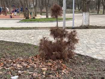 В Керчи на территории Дворца Пионеров засыхают сосны. Одно хвойное дерево засохло уже полностью, другие частично. Керчане не понимают, почему за недавно высаженными деревьями никто не ухаживает. Напомним, в Комсомольском парке засыхают десятки туй, а администрация продолжает высаживать новые, - передает Керчь.ФМ.