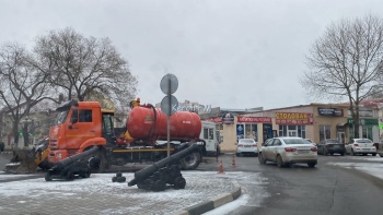 В Керчи 12 января на улице Пирогова водоканал разрыл дорогу. Рабочие с помощью спецтехники откачивают воду с ямы. На 11:40 часов движение на участке дороги было не затруднено, - передает Керчь.ФМ.