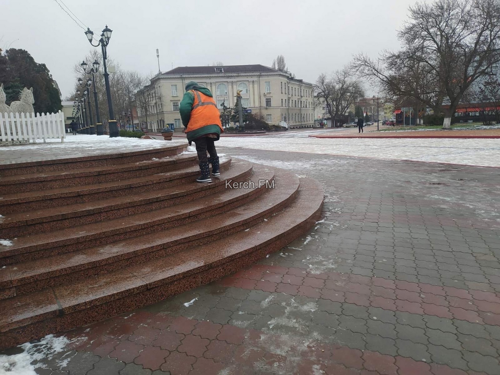 В Керчи с утра 14 января на площади Ленина убирают наледь и посыпают пешеходные дорожки, - передает Керчь.ФМ. Работы шли примерно в 10 часов утра.