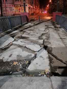 «После летних потопов на мосту можно сломать ноги и упасть в яму!!!!», - пишут керчане