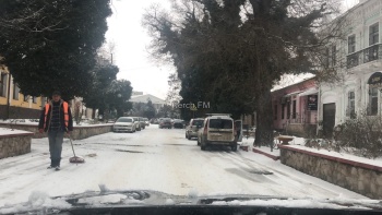 В Керчи с раннего утра на дорогах после снегопада работала техника, которая чистила и посыпала проезжую часть, - передает Керчь.ФМ.