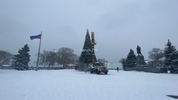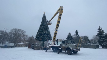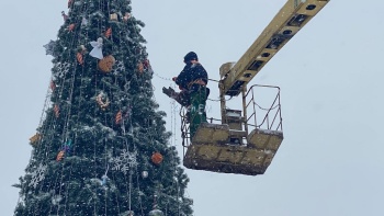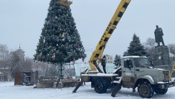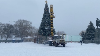 В Керчи 24 января на площади Лепнина коммунальщики начали разбирать главную ёлку города. Демонтировали часть нижних ветвей и начали снимать гирлянду и игрушки. Работы проводят несмотря на снегопад, - передает Керчь.ФМ.