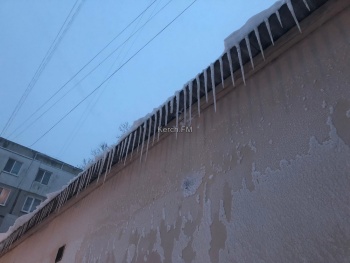 В Керчи с крыш и карнизов начали свисать огромные сосульки. Сейчас на улице солнце, и сосульки начинают падать, - передает Керчь.ФМ.