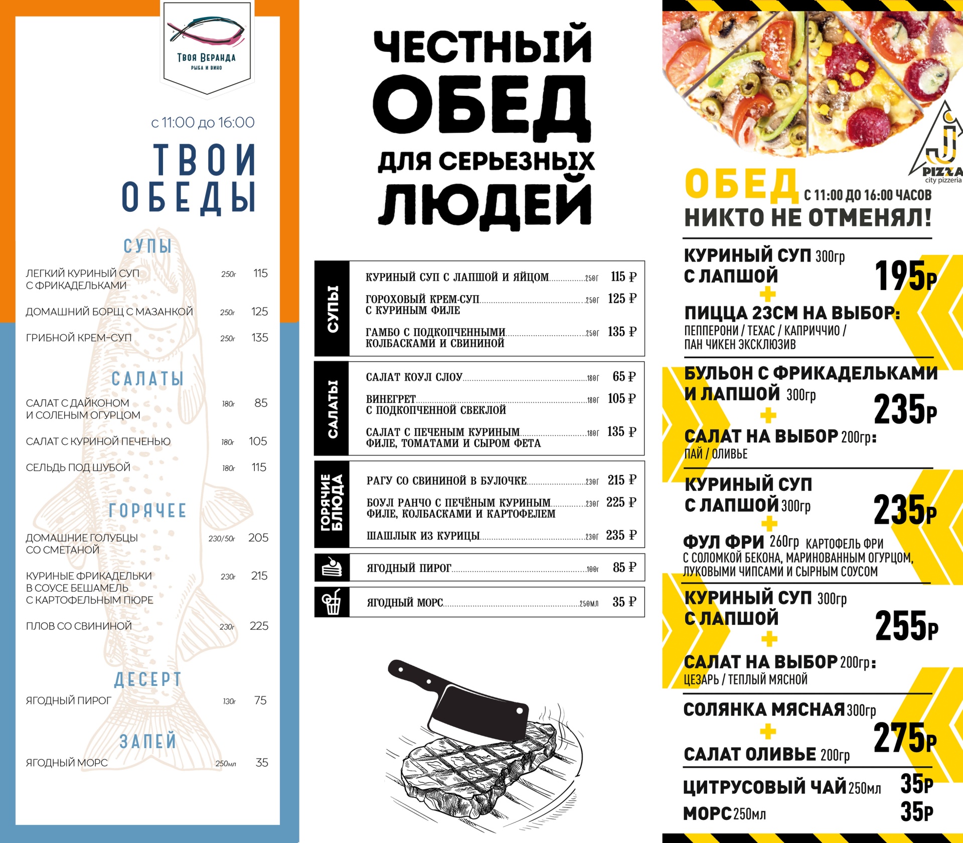 Вкусные обеды по честным ценам, готовим всю неделю с понедельника по пятницу с 11:00 до 16:00, залетайте. Если нет возможности прийти к нам в гости, вы можете забрать обед с собой или мы привезём всё прямо к вам!