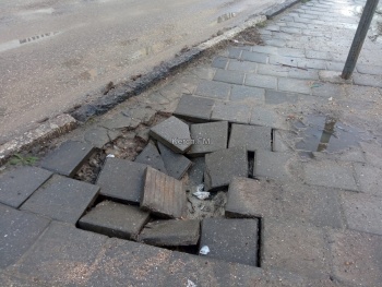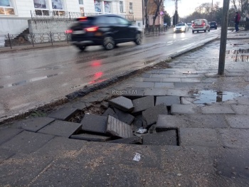 В Керчи еще в прошлом году провалилась плитка у остановки на «Музее». За месяц никто даже не попытался ни засыпать провал, ни оградить, - передает Керчь.ФМ.