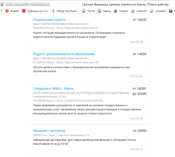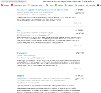 А это скриншоты с аналогичного сайта центра занятости Керчи.