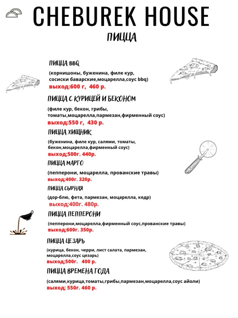 У нас проходит акция! При заказе двух любых пицц - фирменный чебурек с мясом и зеленью в подарок!